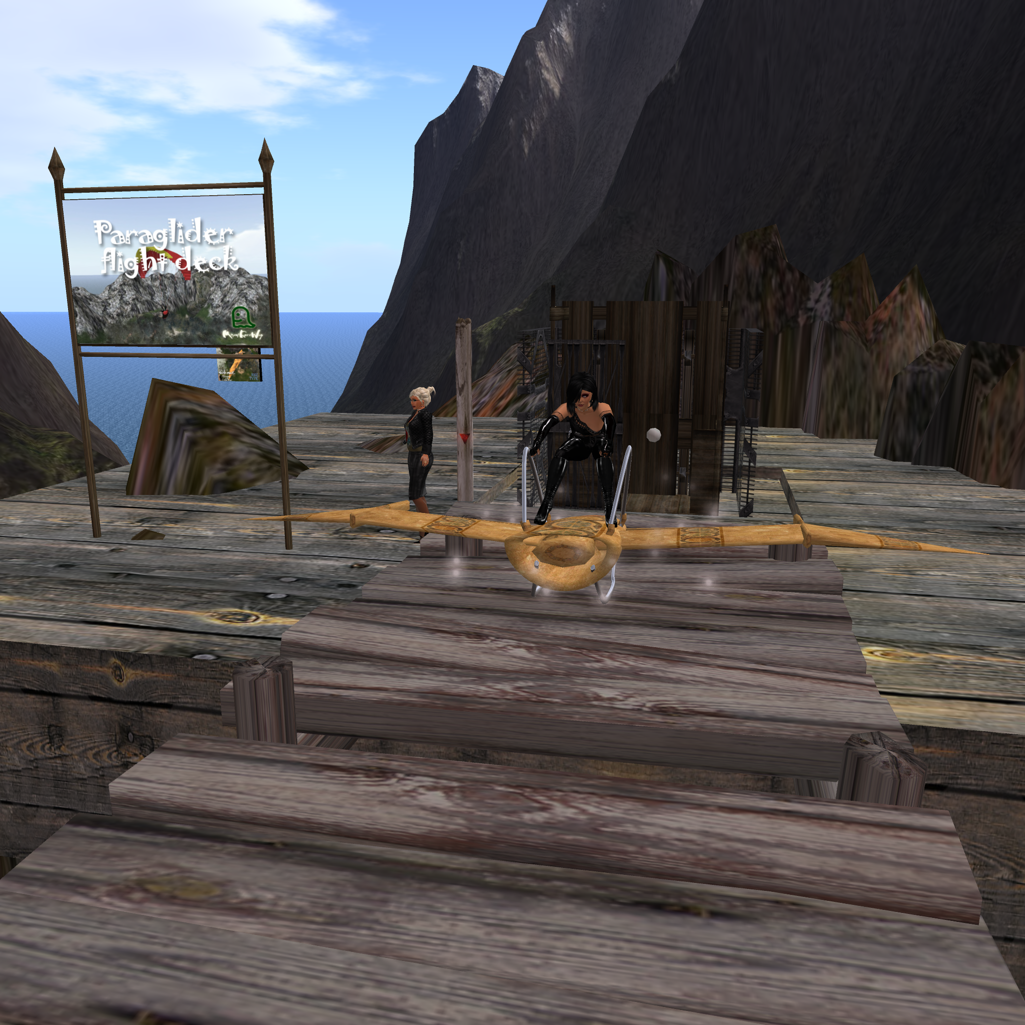 Then we went to the bungee jumping. Ok, it’s SL and thus it doesn’t provide the kick, that i should provide in RL and I never dared trying it in reality. Nonetheless it was fun. Even more fun was trying the Paragliding. We both did it and it is not as easy as it looks. The glider isn’t easy to steer and both of us landed quite hard several times.