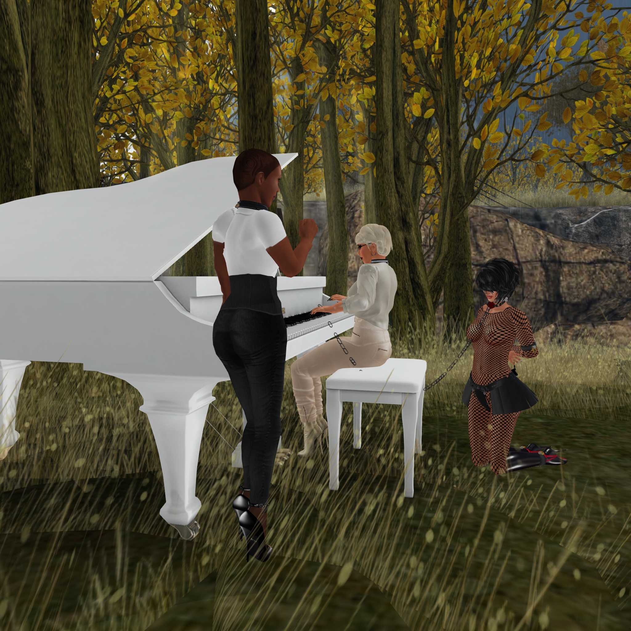 You can also walk over old wooden planks through marsh districts and have a view on the sea. Or you can play the piano that is somwhere in the middle of the island. I took a lot of pictures particular as I explored together with slave Flo and sklavin Gebby. Thus the pictures are not only capturing the landscape and highlights of Aspen Fell Endless but are spiced up with the slaves. I hope you get an impression of Aspen Fell Endless.