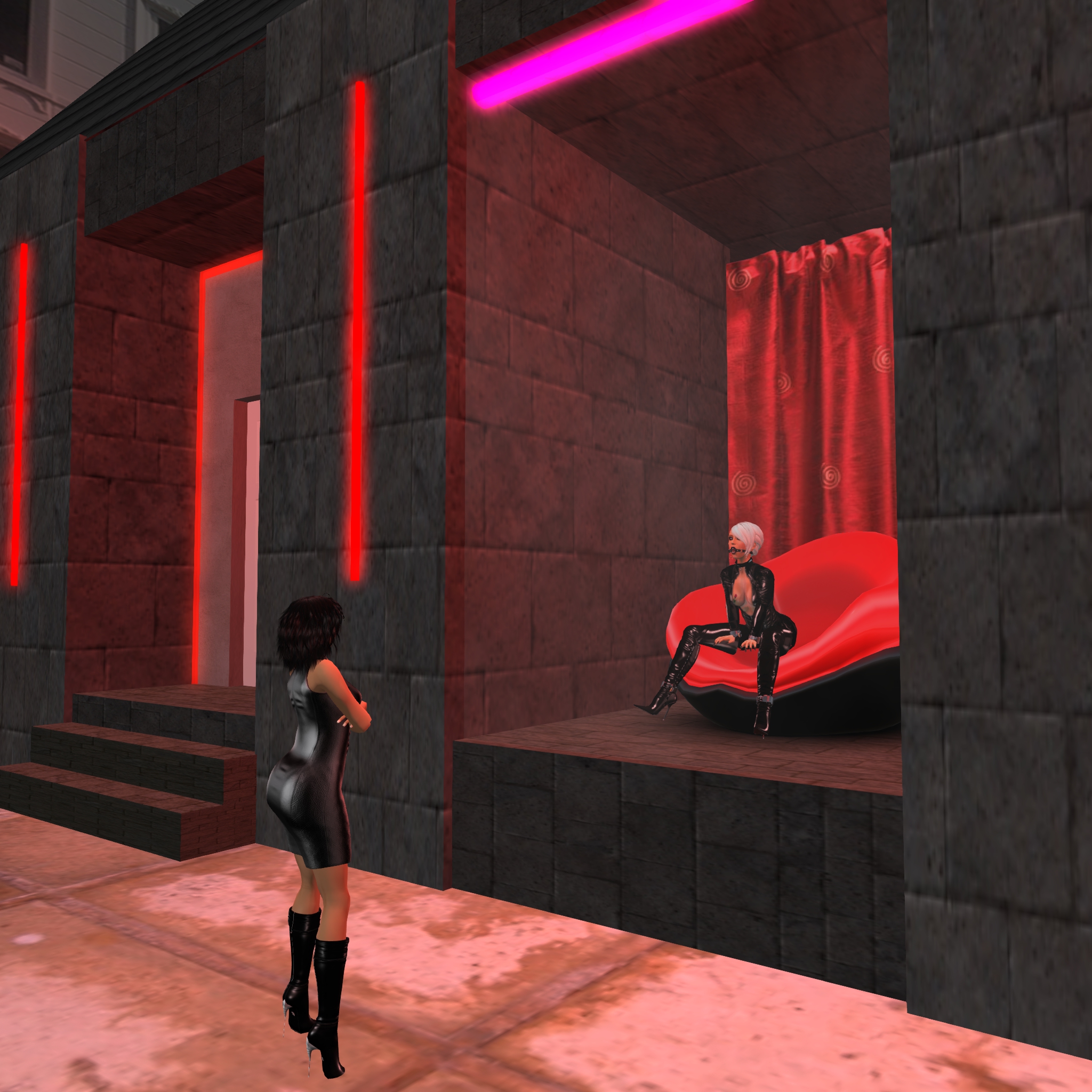 My Sunday began very relaxing. I went to The Cyprian Garden and continued exploring. I found out that there’re 4 parts: The Cyprian Garden, The Cyprian Gallery, The Cyprian Terrace and The Dark side of Cyprian. I found a dungon hidden in a vault behind a thick steel door and still being naughty, I tried the wall rings that I found there (see the picture above). Later I spent this Sunday at Mistress Jenny’s leash. She exposed her property first at The Secret House …