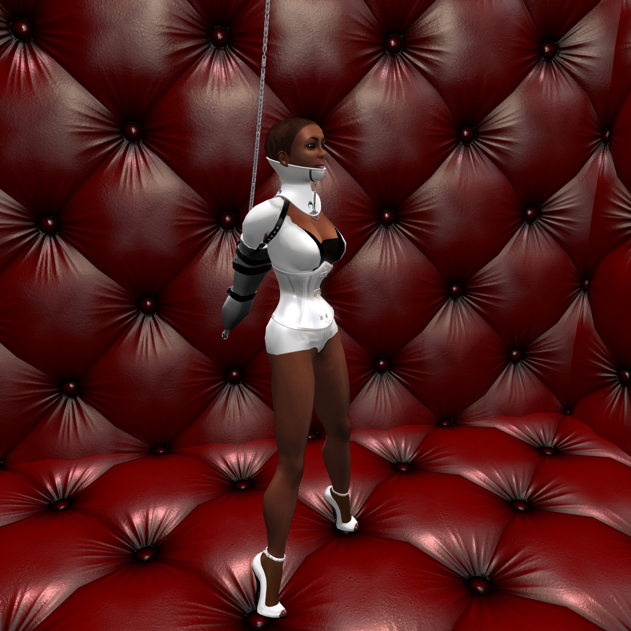I gulped – I could not believe but the words of Nina sounded like a hammer in my mind, so I pressed my lips close and watched the 2 Lldies locking a chain on my single glove. As if that was not enough, they pulled this chain and raised my arms up into an horizontal position. This made it hard to stand in my tight laced corsets and it became harder to breath. I silently begged with my eyes to do the bondage not that hard but all my wiggles and struggles were ignored.
