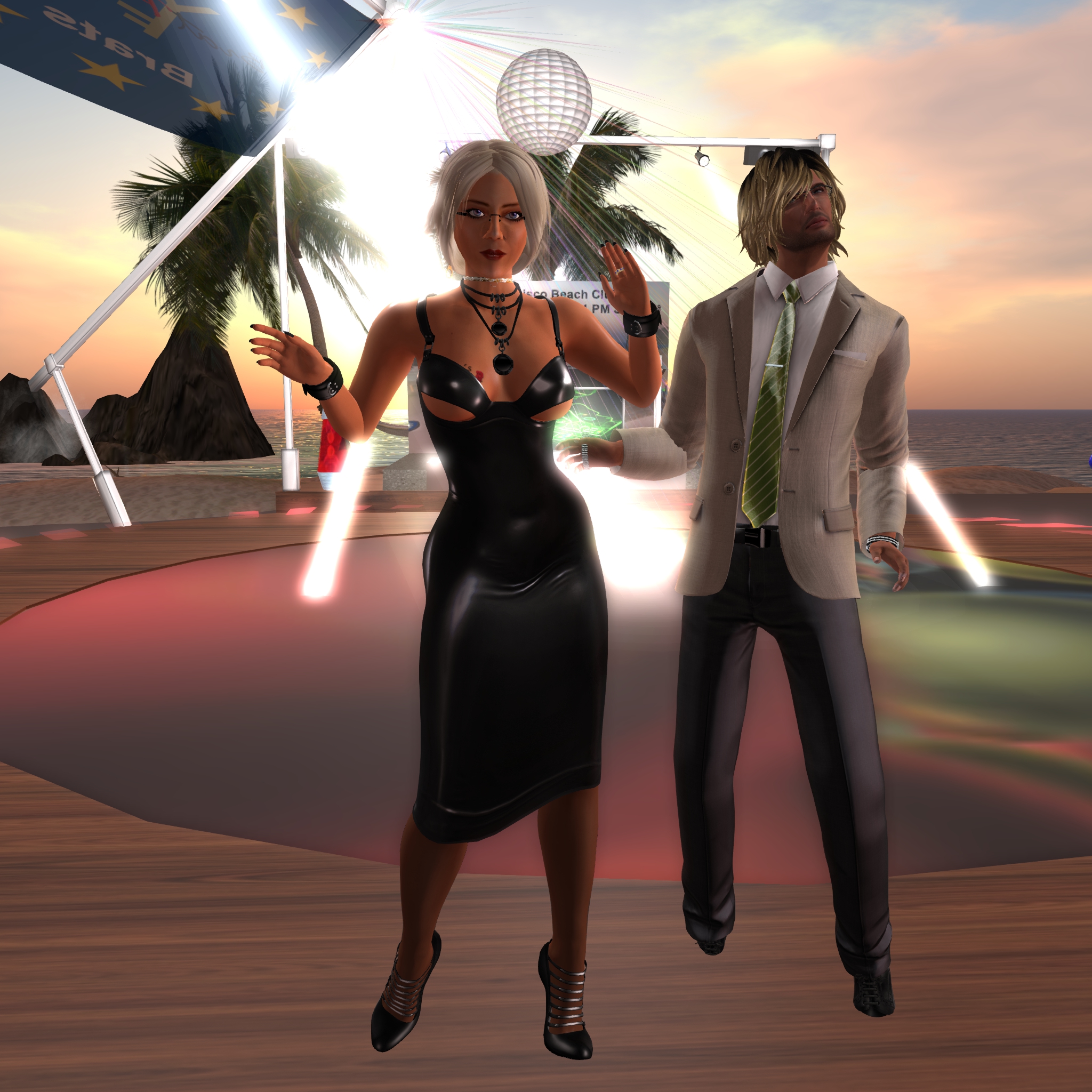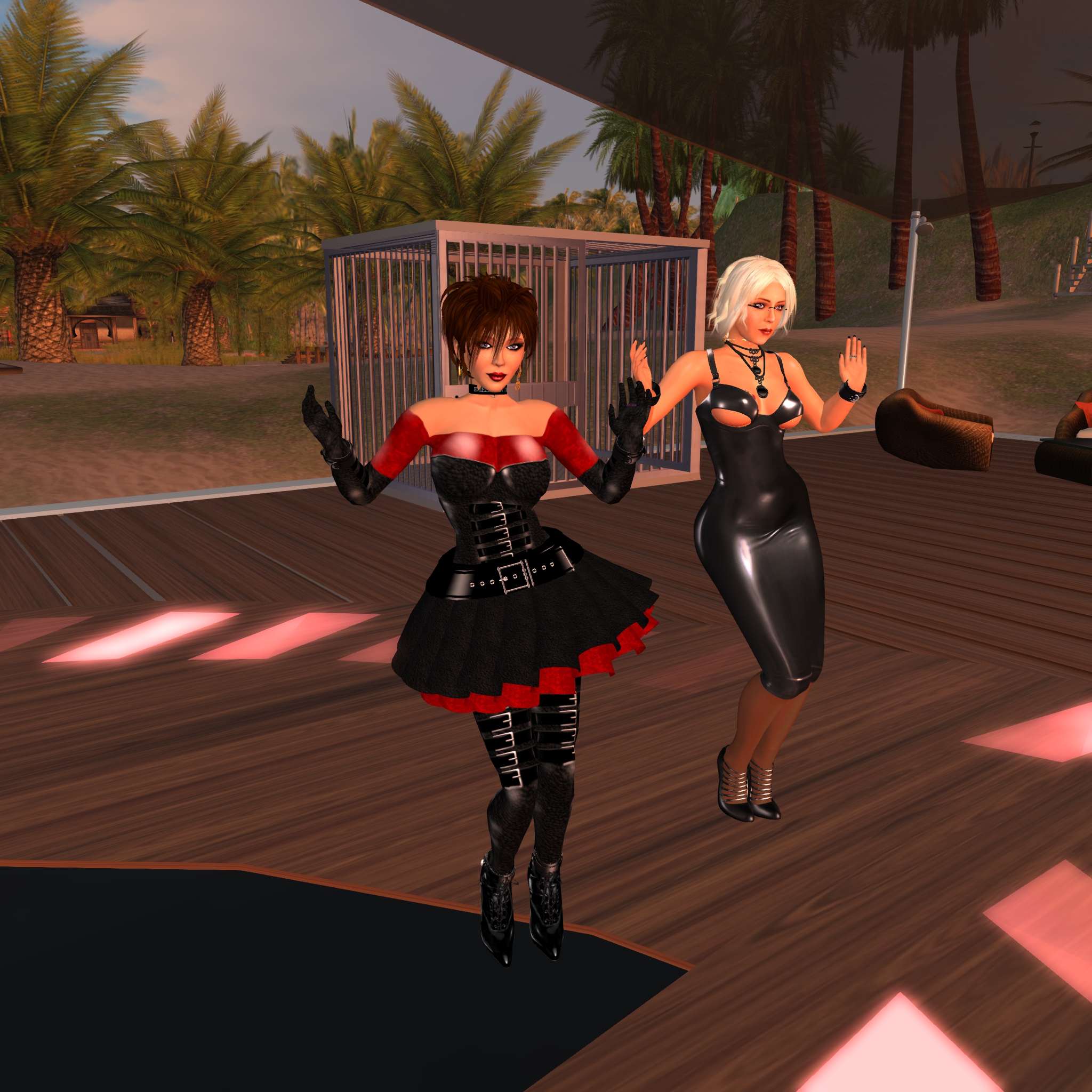 Last night was our regular Friday night party again. The theme fitted well for our slaves “We’re bound to have a party, tied down just to have a dance, chackled and chained to the music”. So I prepared for the party with the slaves at home. While I did that I had an IM with Ed R., a follower of our blog, and I invited him over to the party – and he showed up. Well, not in cuffs but in a business suit. He insisted to dance with me and first I wanted to deny but then I thought – why not? So I did. I confess I’m a bit disappointed that Ed did not dance with slave cecy later – he refused having fun. What a shame, but his loss not ours!