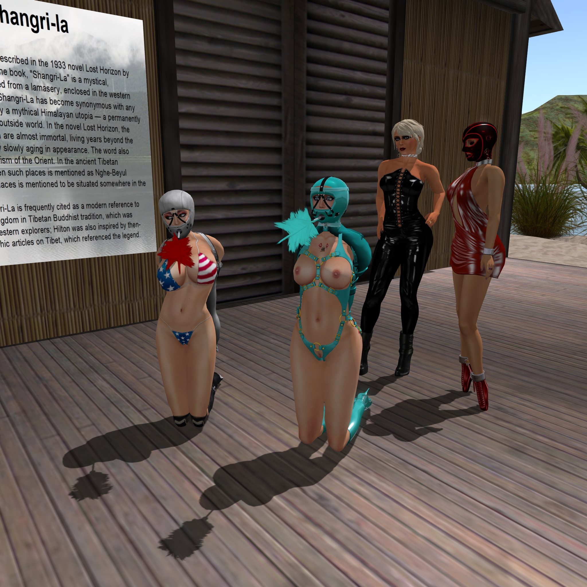 What you can’t see in this picture is slave cecy’s excitement not just in Second Life but also in RL. We went over to our patio and slave cecy had to explain her predicament to Linda. To make a long story short. I leashed slave cecy to Linda and asked Linda to take slave cecy to pony Bronco (yes, that’s slave Flo’s favourite and secret best friend) and to help her to get on it. It was such a fun to see Linda teasing slave cecy, to hear cecy’s moans and her begging and to hear her scream her thank you hearable all over our island.