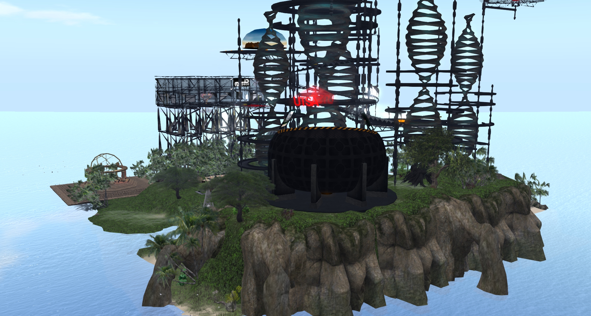 Sunday, August 21st, I followed a landmark in the destination guide to ArtSpace UTSA. There are already lots of blog entries about the USTA (University of Texas at San Antonio) and their committment to Second Life (if you want to read more see here). The ArtSpace UTSA is a quite small gallery embedded in a futuristic installation of buildings, stairs, platforms, sculptures and other elements of art.