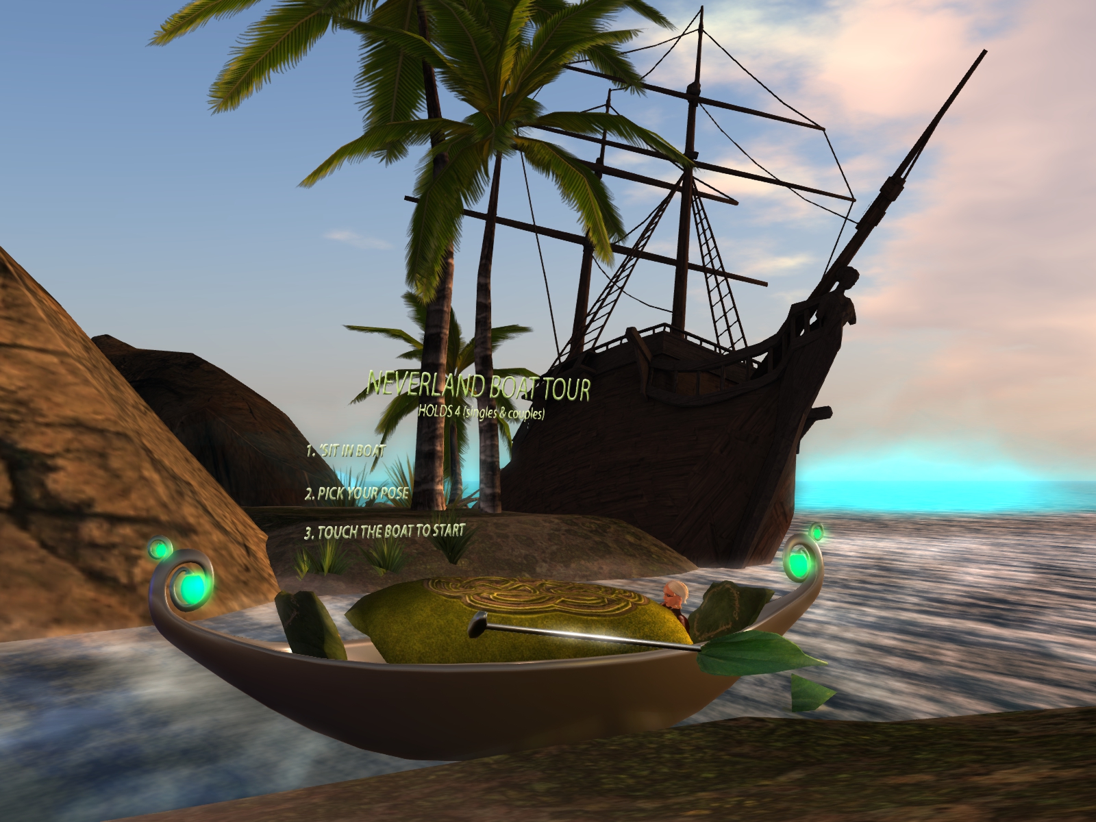 Neverland Tour: We hope your enjoyed the tour. Now it’s time to explore on foot. Sign posts and torches will light your way. Look for the Journey Cloths (Pirate Flag) which will take you to unique locations not accessed by walking. Find your way to THE PORTAL in the Ruins to take you to the Neverland Pavilion where this month’s live music performances will be held. Farewell. Be Safe!