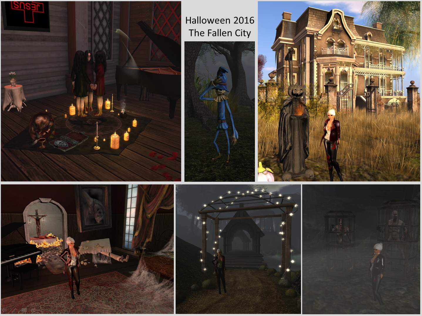On Monday, October 17th, I visited The Fallen City as Inara Pey’s blog post inspired me. It is spooky, has great sound and some nice effects and is what you expect from a sim for Halloween. There’s not that much to add. The card playing Skeletons, the nun circling around a child Skeleton, spooky houses with dead bodies, ghosts, screaming voices of kids … pumpkins… and what I liked in particular the billard table in form of a coffin. For me a “must-see” during Halloween Season. I add some of my pictures for myself (this is a diary too) and for those who want to get an impression before visiting. Have Fun!