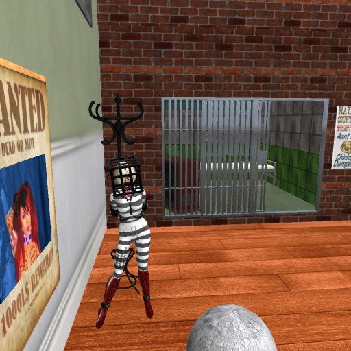 “Mistress, Kitty is innocent. Bad guys did it… not Kitty. Kitty just happened to be at the wrong place at the wrong time. Sorry for the bad snapshot. Kitty could do it only once and is now out of money. Mayberry County Jail. A bank got robbed here. Kitty was close-by. Really, really bad luck!”