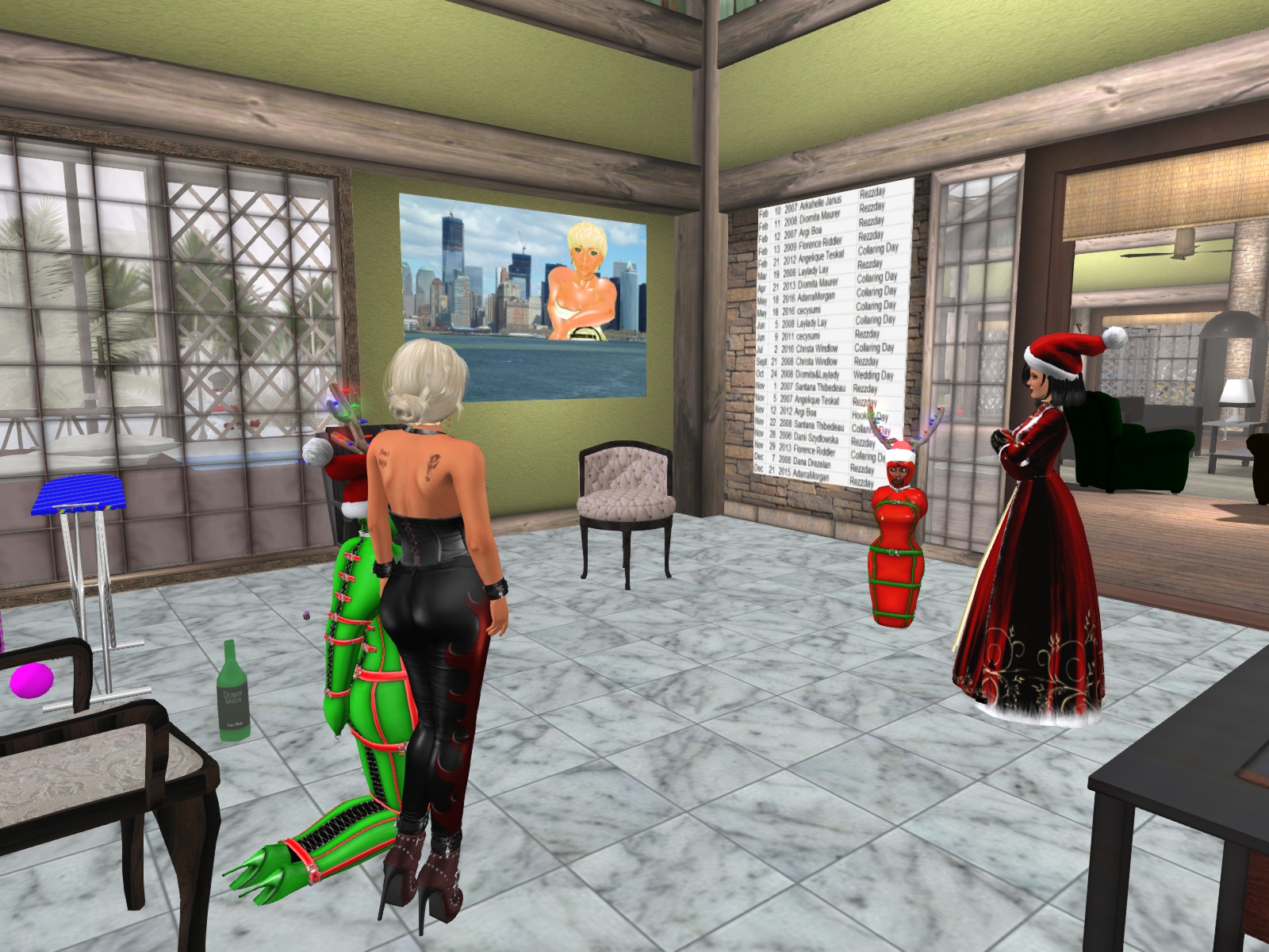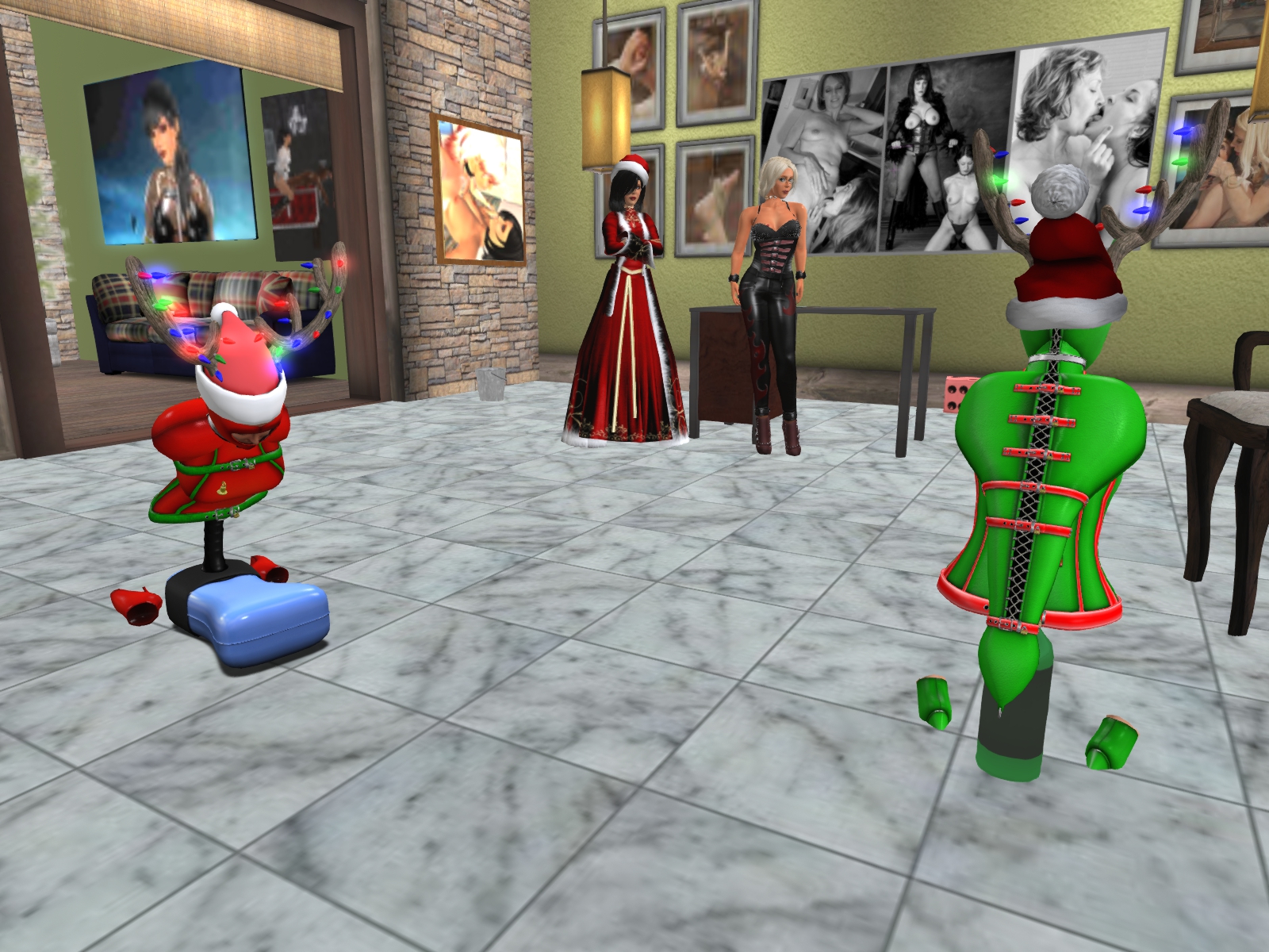 And at home? Is there also some seasonal spirit? Of course! When Mistress Jenny and I logged on Tuesday night, December 20th, slave Flo and slave cecy were online. They had cleaned the house really spotless and they sprawled on the chairs in our office. When we came in, they quickly stood up and knelt but it was too late, we noticed it. What I noticed in addition was a strong smell …. as if one of them just had an orgasm. I asked Mistress and she did smell it as well .. and then we asked the slaves.