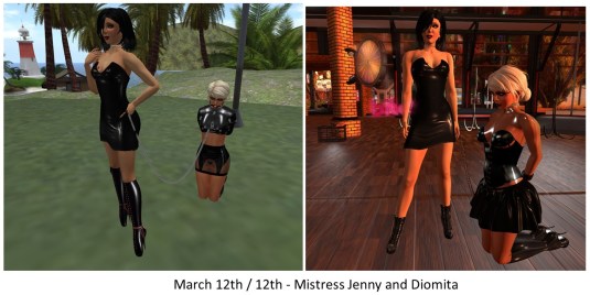 We had a quiet weekend starting with the regular party Friday night at our homesim. The party has become a part of our everyday life both in RL and SL. Mistress Jenny is back in control and she’s beginning to shorten my leash again. We took the slaves out to The Secret House and had some chatting while we exposed them. Sunday night we brought our slut slave cecy to Psi and stored her there. And I visited her together with slave Flo Monday night, March 13th. That’s about it form the last quiet days. Oh no …a few pictures follow of course …