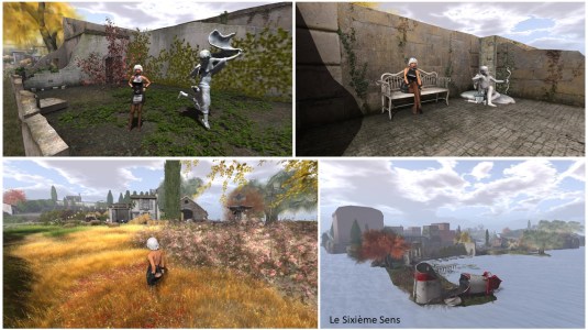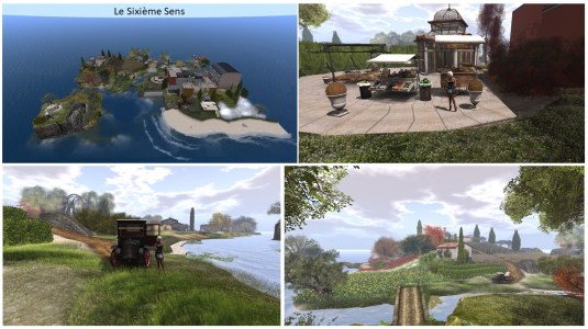 Le Sixième Sens consists of three islands, the village is on the main island. The seccond largest island is farmland. On it’s one end is a ruin with same nice places to sit and cuddle. And there’s the broken lighthouse that I saw on another sim already. That fits well to the ruin. Besides the farm there’s wine and a lovely house on the top of the vineyard. The smallest island is more or less just a rock with a little house on it’s top, that is used as an artist’s workshop.