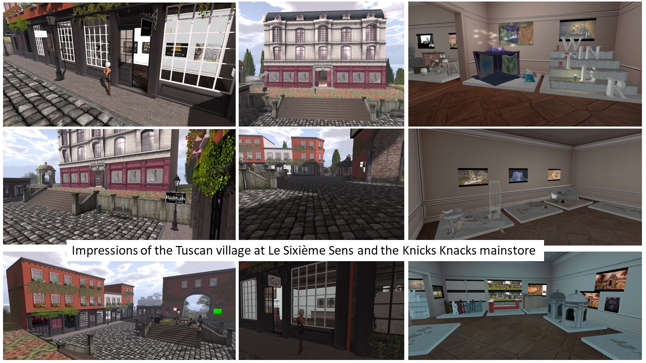 Le Sixième Sens is French and means “The sixth sense”. The sim is designed by Yeiyaiel and Natacha Haroldsen, they are partnered in Second Life. Le Sixième Sens is the home of the Knicks Knacks mainstore, which is owned by Natacha Haroldsen. The shop offers design buliding elements and other stuff for interior and exterior decoration. You land exactly in front of the main entrance of this shop. I had a quick look around and yes, there’s some stuff that really looks nice.