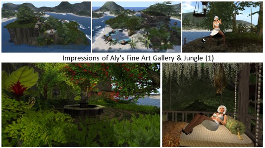 I explored and discovered Aly’s Fine Art Gallery & Jungle for about an hour and I really enjoyed my visit and I took many pictures. A lovely sim! Thank you Aly for your art and in particular for providing your sim to the public.