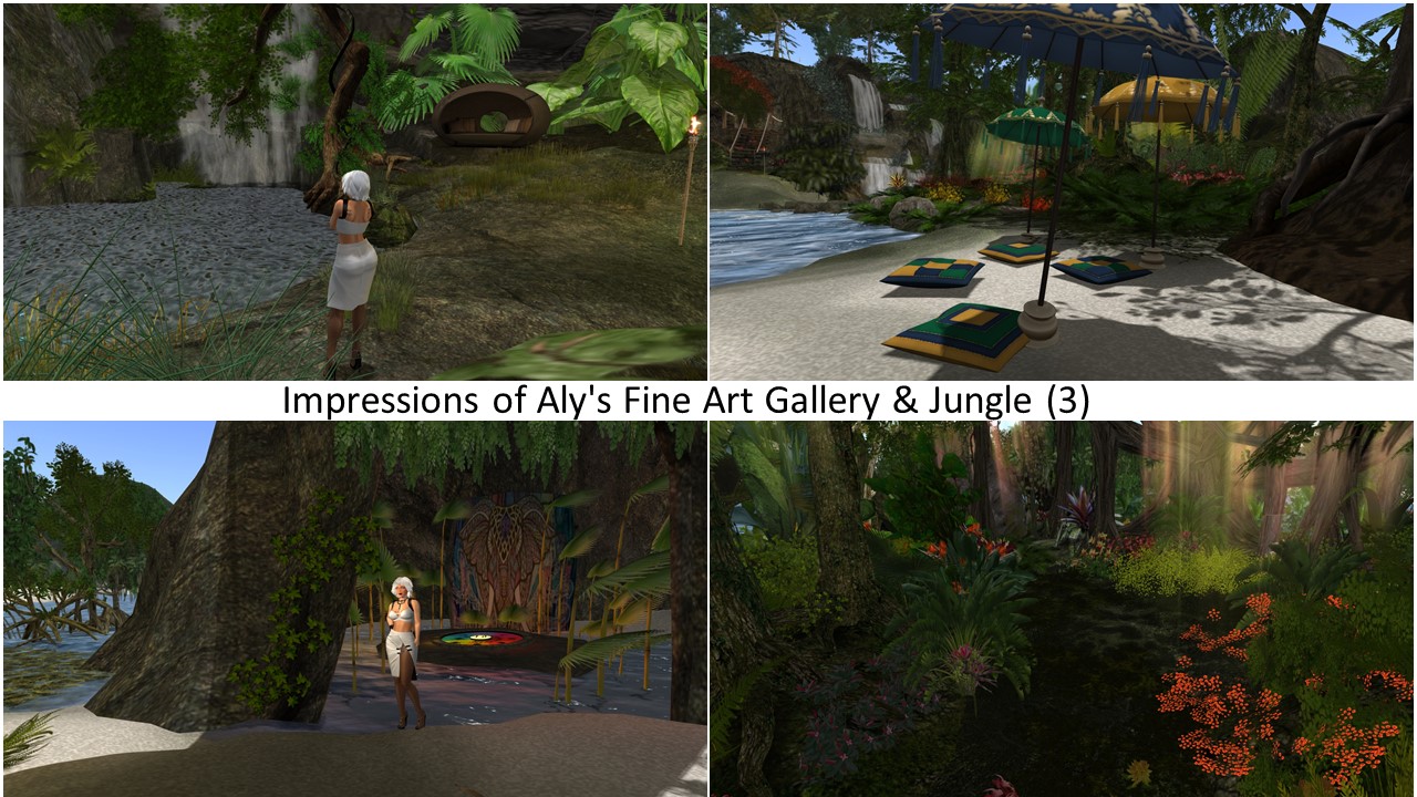 I explored and discovered Aly’s Fine Art Gallery & Jungle for about an hour and I really enjoyed my visit and I took many pictures. A lovely sim! Thank you Aly for your art and in particular for providing your sim to the public.