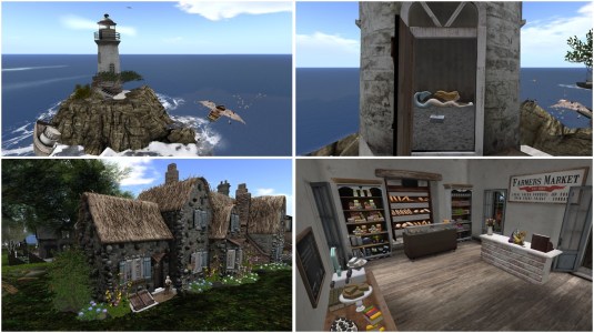 A bit further away you see a wooden building that looks like a church, but inside is a club called Epilogue, that is managed by Charlotte Ophelia Gilmore (charlottegilmore), as far as I understood, the SL daughter of Sunshine. Epilogue is “just a cozy place to hang out, have conversation and listen to music! They have occasional music events, open mic, book clubs, readings, and just sharing of their artistic endeavors.”