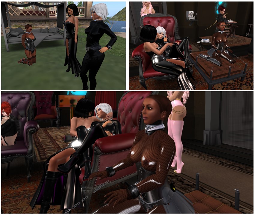 At night we met slave Flo first and spend some time to get her into a different outfit. We updated her chastity belt and her KaS corset and I locked everything to keep her safe. Then we went to club DeLust to relax and slave Flo got the place on the kneeling pad right next to us – not for long though because slave slut cecy came inworld and shared the place with slave Flo.