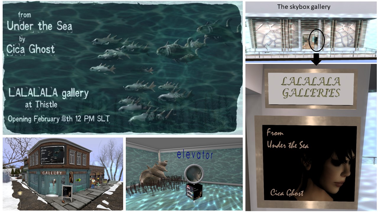 I went on a short simploring tour Friday, February 9th, to see it. When you arrive at the lalalala Gallery, you’ll find just one exhibtion room. There’s just a teaser, a poster for the exhibtion and a teleporter to the gallery itself, which is located in a skybox.