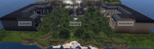 Around the landing point are several boards, one announcing a photo contest, another an “Enchanted Spring Treasure Hunt” coming in April. Around the landing a thick forest. Two other boards show the way to Petit Mort and to Oubliette. Both stores are huge. I peeked into both – and at Oubliette there was a crowd of customers. It might have been an event.