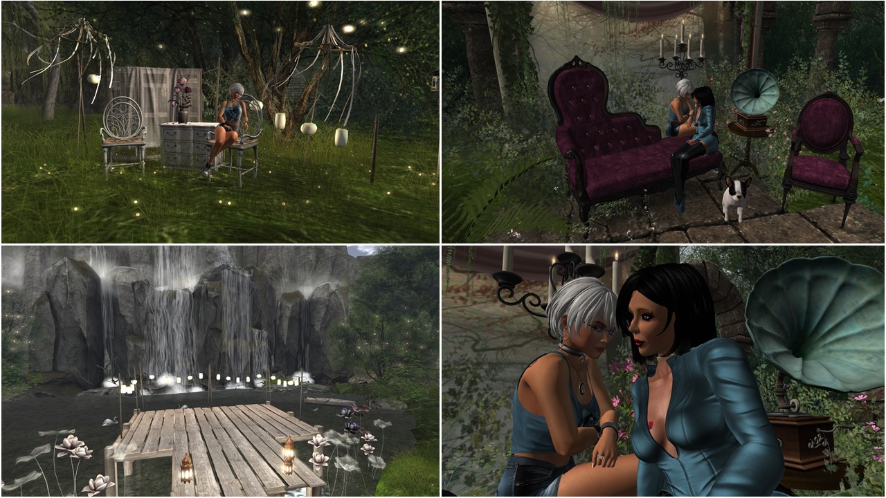 Beside shopping Witchwood offers several spots to sit and to cuddle in this particular forest atmophere. And by this it also offers the opportunity to take pictures. During my short visit Mistress Jenny came inworld and met me there. And of course I made some pictures of us.