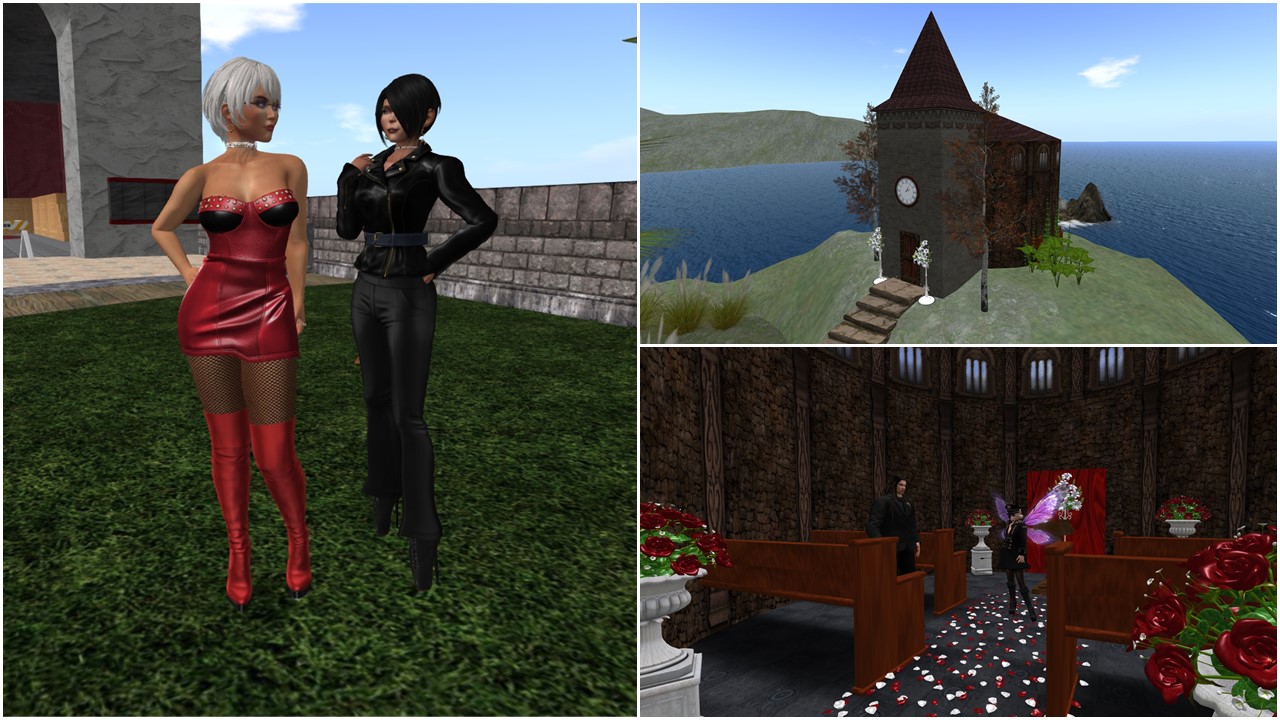 About a week ago, Starry (Starbright Wingtips) asked us to use our sim for a wedding. Starry runs a steampunk prison, a place that I still have to visit. Two of her guards, Ronan Dex (keeblerain) and Ruby Dex (EmeraldEd), want to marry in Second Life and Starry searched a location for them. She herself and Della had their vow renewal here as well. Of course we agreed and Jenny proposed to use our chapel, the keep, for the ceremony.