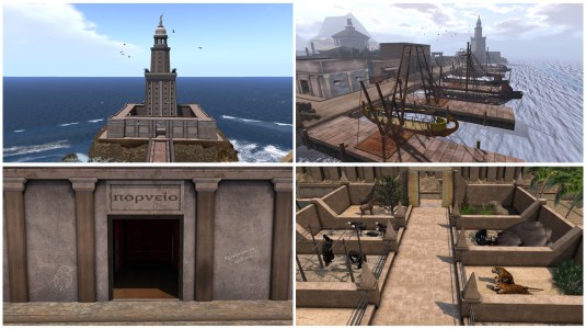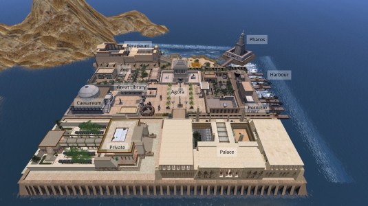 My simploring tour on Sunday, July 29th, led me two thousand years back in to Alexandria in the year 40 bc. I picked the landmark from scoop.it SL Destinations. The landmark description is short but precise: “The most amazing city of Antiquity. Immerse yourself in the history of the great city of Alexandreia, 40 B.C.“