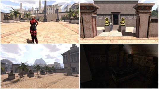 Alexandria in Second Life is built on a full sim and rated adult. It is owned by Kleopatra T. Philopator (doroty.davies), who says about herself that she’s “the Queen of Egypt and the living Goddess Isis, remaining in Alexandreia with my family and the Court.“