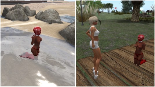Saturday later morning, I went inworld with the intention to go on a simploring tour. But I had to postpone it. slave Flo and Kitty both were inworld. slave Flo was complaing about the heat in RL and showed me her way to cool down by sharing a picture. By the way, she found a nice workaround for sharing it without having inventory.