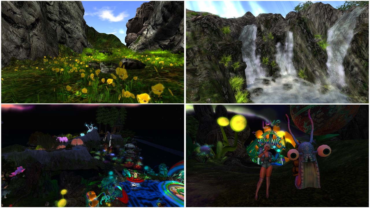 “We are a virtual community in Second Life devoted to Peace and Higher Consciousness through music. Our magical venue, Organica, provides wonderful goa/psy and live music events, and our island exists as an educational portal and place of community where friends can meet and share ideas and talents as we prepare for an uncertain future. We celebrate nature and music at each solar point throughout the year at our Equinox and Solstice Festivals. There we gather in a rite of renewal to Life as we burn our Wicker Man and celebrate the Great Mystery”