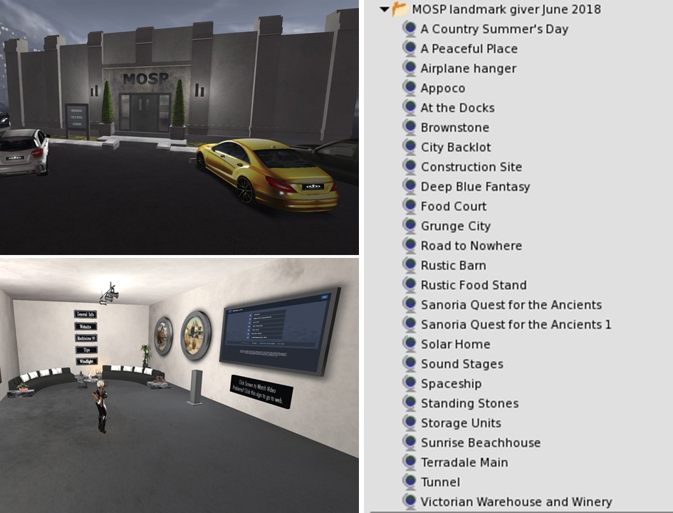 At the office of the “Machinima Open Studio Project” you can grab a folder with all landmarks and other useful information