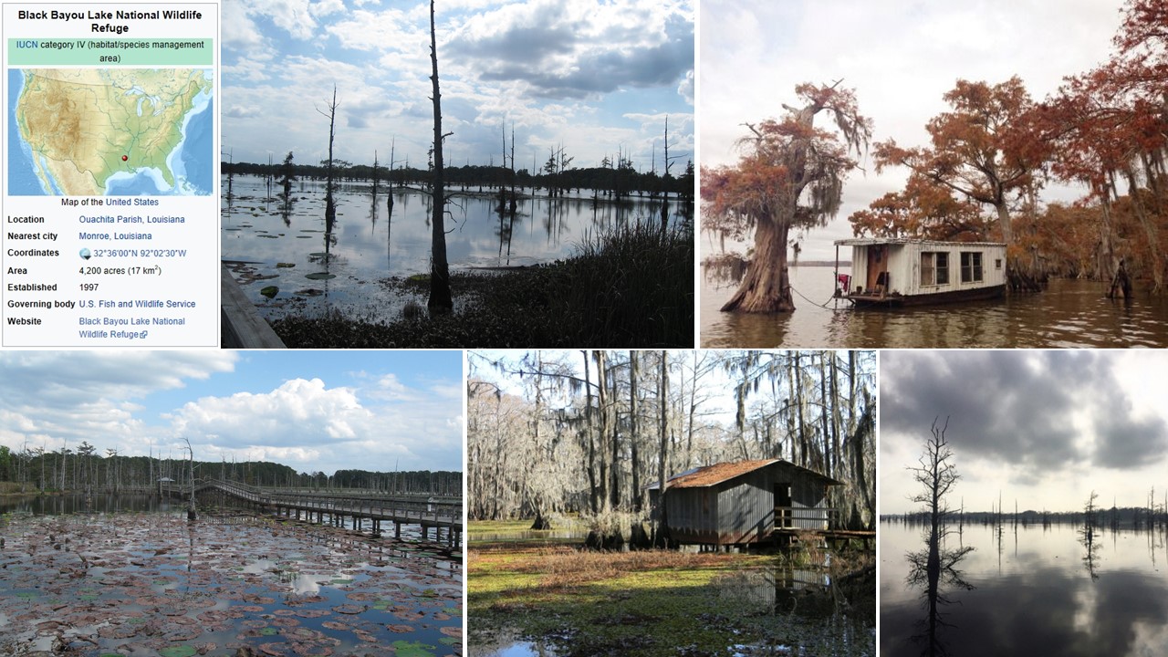 Black Bayou Lake – National Wildlife Refuge, Lousiana (sources: http://en.wikipedia.org/wiki/Black_Bayou_Lake_National_Wildlife_Refuge, https://flatfooting.wordpress.com/2014/10/01/black-bayou-lake-national-wildlife-refuge/, https://furillen.org/black-bayou-lake/)