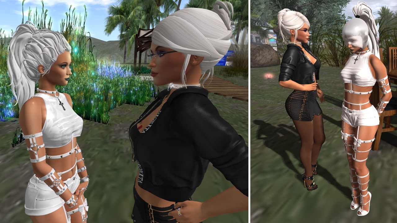 When I returned online at night, Angelique was at home and we met at the greedy table where she was playing on her own. Angelique was wearing a nice white mix and match outfit with leg and arm harnesses. She asked for permission to get fitting heels and I granted it.