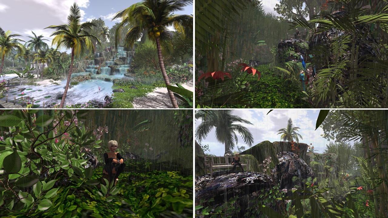 The rain forest is really something particular. Of course it rains and you can hear the sound of the waterfall mixed with the noise of the rain. To sit in the rainforest is something you won’t get often and again you can watch some animals or just enjoy the atmopshere. And in Second Life you won’t even get wet *winks*.