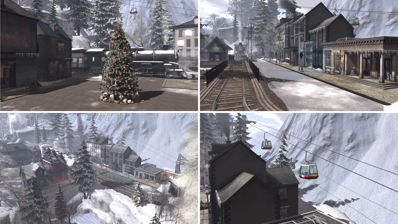The first views caused a “wow” for me. The scenery is just lovely and beautiful, the houses look cosy, the sounds do fit, it is lightly snowing. Accordingto the season there’s a Christmas tree in the center of the court. In the background you see a gondola lift leading up to a high mountain.