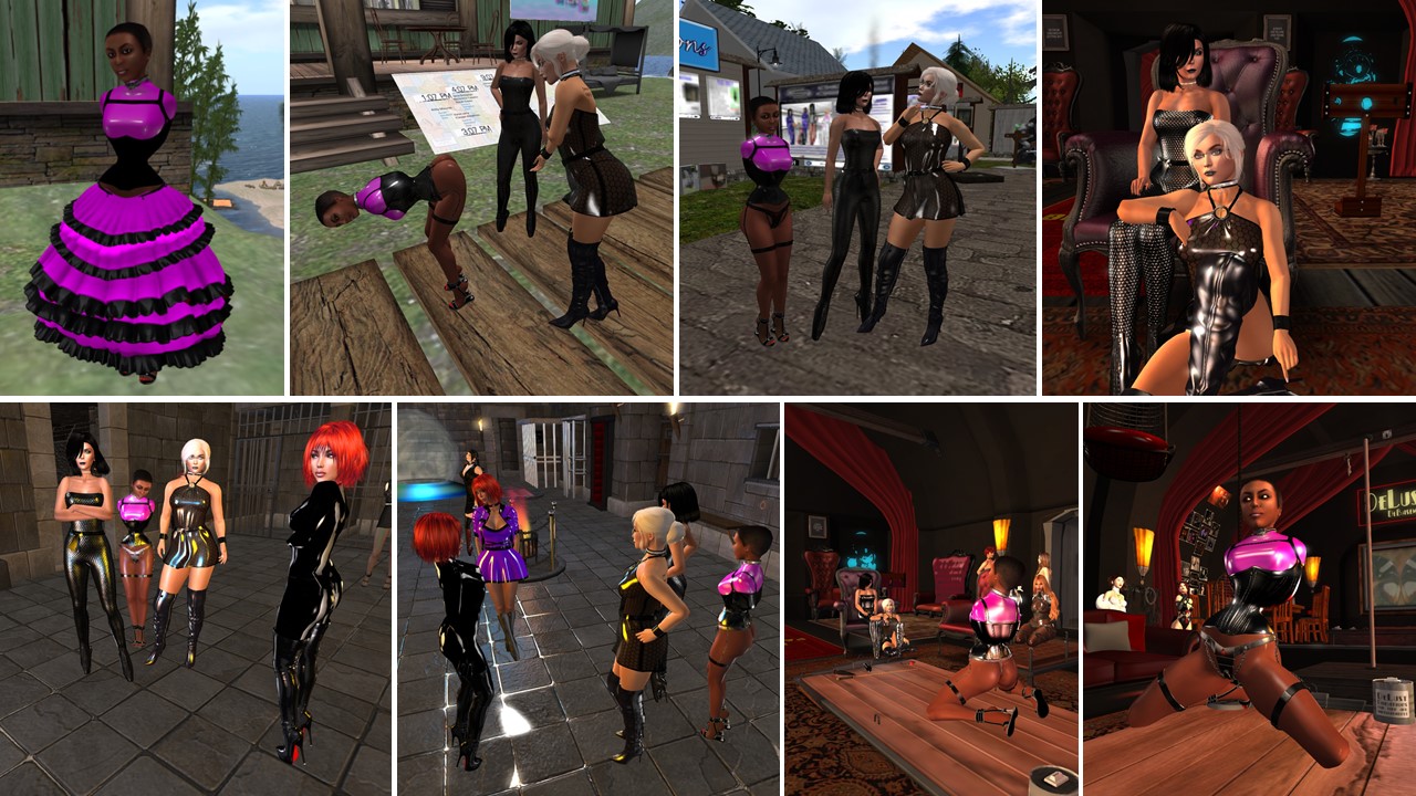 February 13th – Flo’s 10(!)th rezzday anniversary: Flo at home in her gown / Flo getting her rezzday spanks at home, at Psi’s realm with BC and at Lochme / Mistress Jenny and Diomita with slave Flo at club DeLust