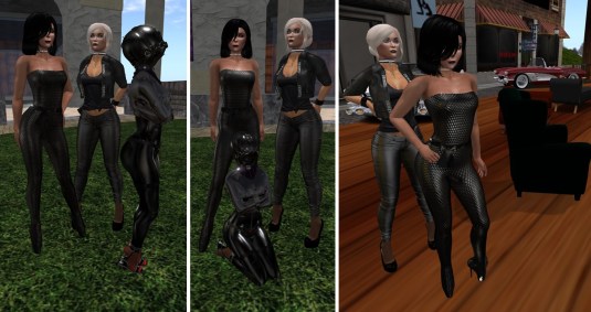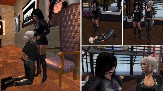 At night Mistress Jenny and I unwrapped slave Flo removing the armbinder corset and she had to put on the straight jacket that she got from us as a rezzday present. We “completed” the straight jacket with a latex catsuit and a hood and kept her wearing the reverse heel stilettoes that force her to kneel every once in a while to provide a break for her legs. Once we were satisfied with her new outfit, we went to Heavy Bondage Club with her to expose her.