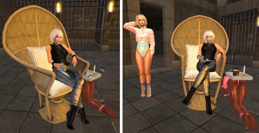 At night I went to Psi’s realm with slave Flo and relaxed while drinking coffee and watching the crowd. Later Angelique joined us there. I had assume that slave cecy would show up … but she didn’t – at least not while we were there. slave Flo moved too much and some coffee was spilled when the tablet fall from her back to the floor. I expected her to clean up the mess she caused and just before we left, I asked her if she did.
