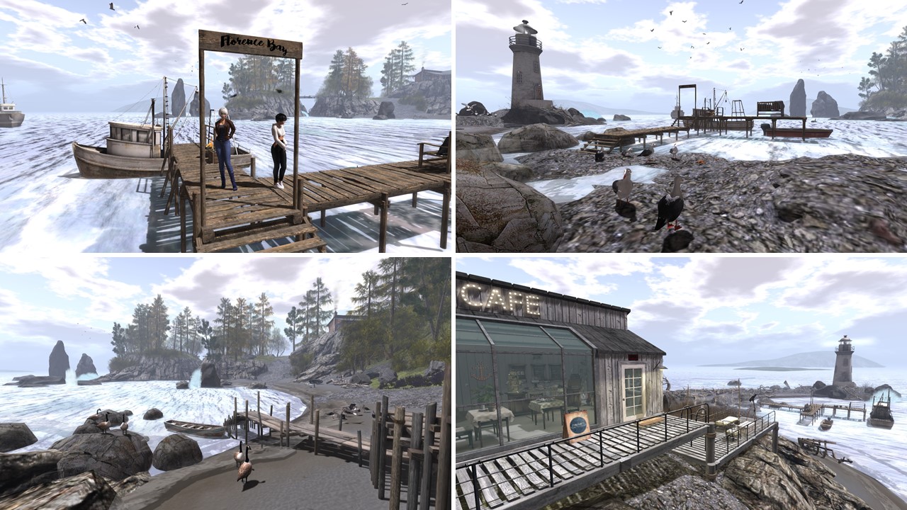 Thursday, March 14th, I visited Florence Bay together with Angelique. It was nice to have Angelique with me on my tour. I had the landmark on my list of places for a while already since I read Inara Pey’s blog post “A rendezvous with Florence Bay in Second Life” back in September 2018. Just a few days before I finally went visiting, Florence Bay was also listed again in scoop.it SL Destinations.