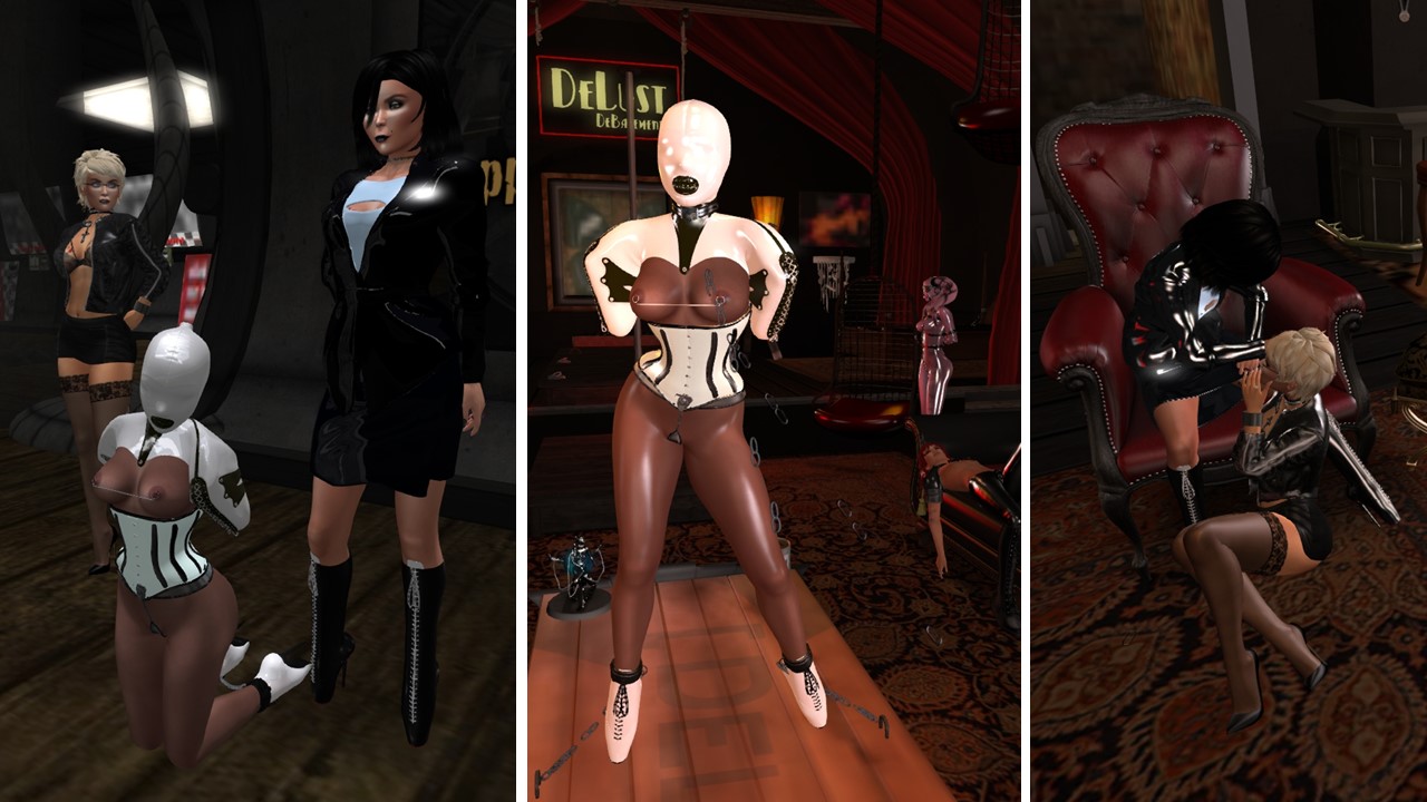 slave Flo was present and we went out to expose our restricted “Butterfly” slave. The hood she’s wearing comes together with a bondage shirt restricting her arms as if they were shortened. Arms are overrated anyway. Mistress Jenny took me and slave Flo to Mesmerize Dungeon and to club DeLust. Both places were quite full and at club DeLust Mistress even managed to initiate some local chat.