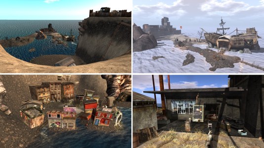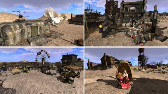 The landing is in an underground bunker where you can get some information and more. The Wastelands is an apocalyptic residential area. It exists for over 12 (!) years (and I never heard about it before!). Once you leave the bunker and enter the daylight you’ll see that The Wastelands consists of ruined shops, makeshift homes, broken buildings, sand-strewn streets, and rusting, twisted tracks of a long-abandoned railroad. I thought I could grab an information notecard but you get even more, if you’re interested. The Wastelands have an own wiki.