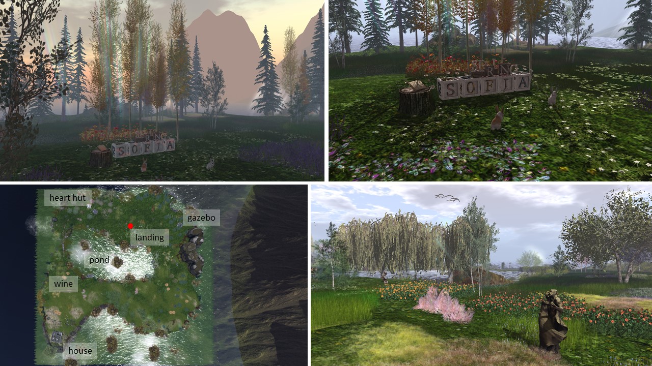 For my simploring tour on May 8th I picked “Sofia” from scoop.it SL Destinations. Sofia is a moderate homestead owned by Agaras. There’s no real landmark description, just one word “Springtime”. And the sim is designed for Spring.