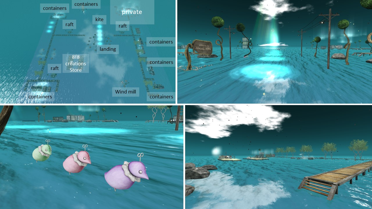Black Kite is an adult homestead owned by Cloudy (theblackcloud Oh), it is her home. There’s a private corner and you’re kindly asked to resepct it. Also flying above 300 m height is unwanted. You are visiting as a guest. It is also home for her friend iBi (8f8)’s store “8f8 Creations”, which offers a broad variety of decorations and a bit of everything at Black Kite. On the marketplace, 8f8 also offers male clothing.