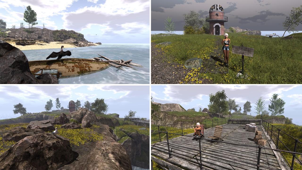 Summer Edge is a moderate homestead, owned and designed by Funky Banana (funkybananas), who also created Wild Edge, a sim which I visited in December 2018 (Simploring 2018 (110) Wild Edge). The landmark description is short but to the point: “A remote island with no inhabitants, perfect for an escape from everyday life. Beaches, cliffs and fields”