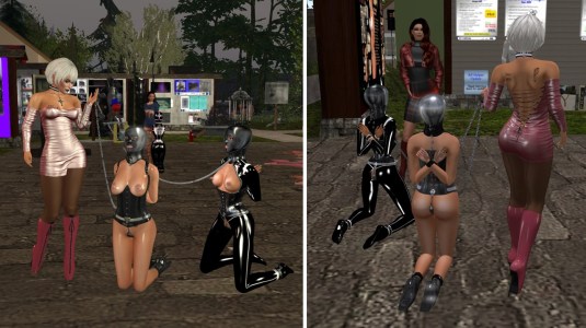 I planned to have a relaxed night and I got a relaxed night. I took slave Gwendi and slave Christin to Mesmerize Dungeon and later to Lochme. At Lochme we had a nice conversation with Marina (marinameyer), who I had just met on deviantArt the day before. She teased the slaves and Marina and I had fun.