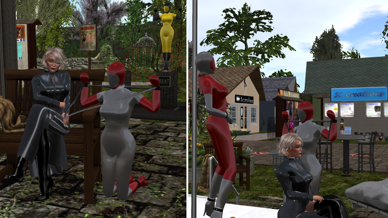 We left Lochme after one hour and moved on to Mesmerize Dungeon where we met Ann (Transann) with her Rubber Doll again. The slaves to attract some attention and I got some remarks about them. slave Flo had to leave unexpectedly and I took slave Gwendi and slave Christin home soon later.