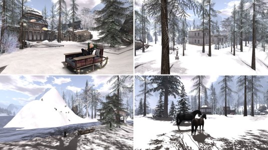 Winter’s Hollow – the sledge behind the ballroom, the private house of Stella, the penguins sliding downhill and peaceful horses