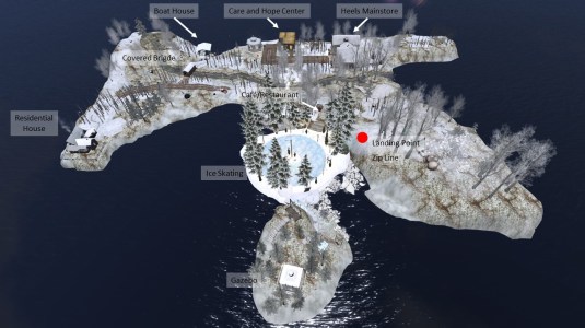 When I published my simploring report about Dream Bay on November 22nd (read Simploring 2019 (117) Autumn @ Dream Bay), it was just the day Aylia (aylaj) began with modifying the 2 Islands for the Winter season. I decided to revisit Dream Bay on Friday, November 29th. Dream Bay is moderate homestead owned by Morgan Firehawk (mmorganwhitfield). It is the home of the Care and Hope Center, the mainstore of a brand for shoes “Heels” and it is the private home of Morgan, she calls it Huckleberry Island.