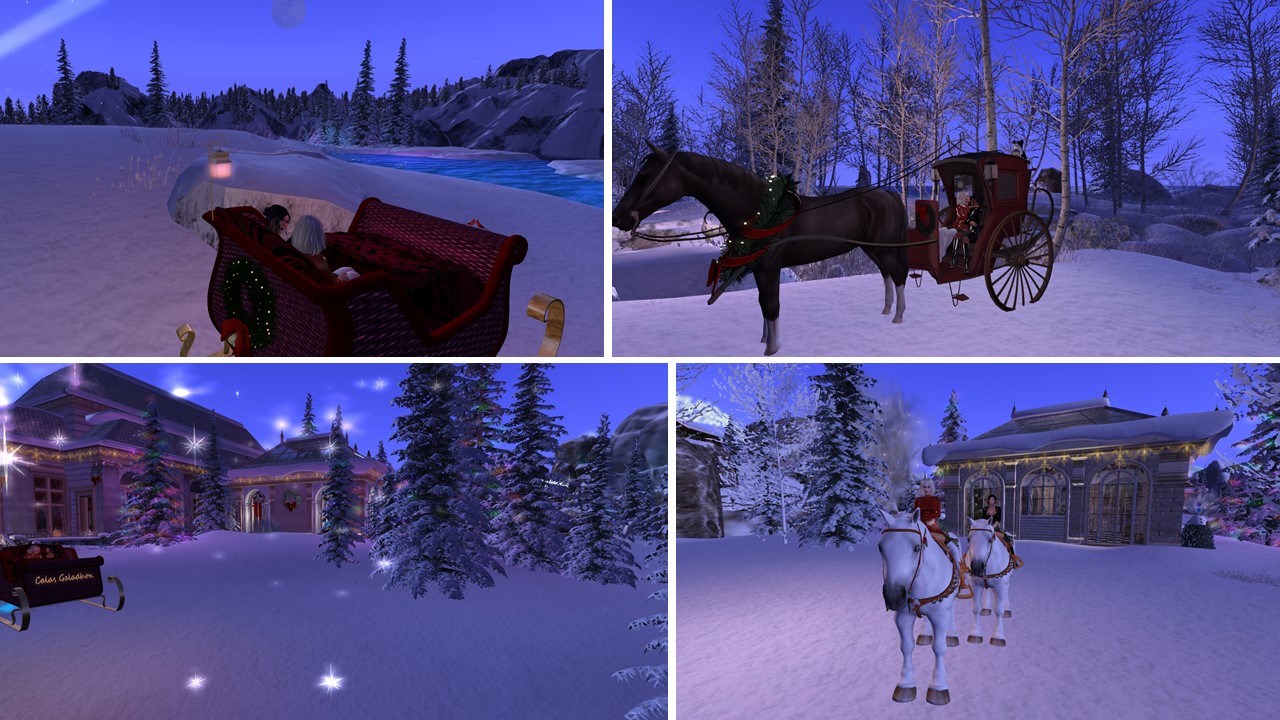 After we had finished our game, Mistress wanted to take the slaves to A Calas Christmas for a sleigh tour. slave Gwendi first changed into her Christmas outfit, then we all had to strip scripts off in order to visit there. That took a while! But it was worth it.