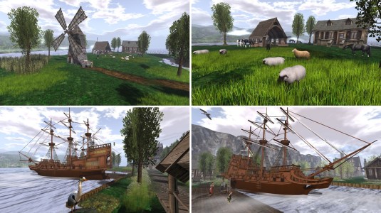 Last but not least there’s a harbour with two big sailing ships, there’s a wind mill and a farm with sheep, cows and horses.