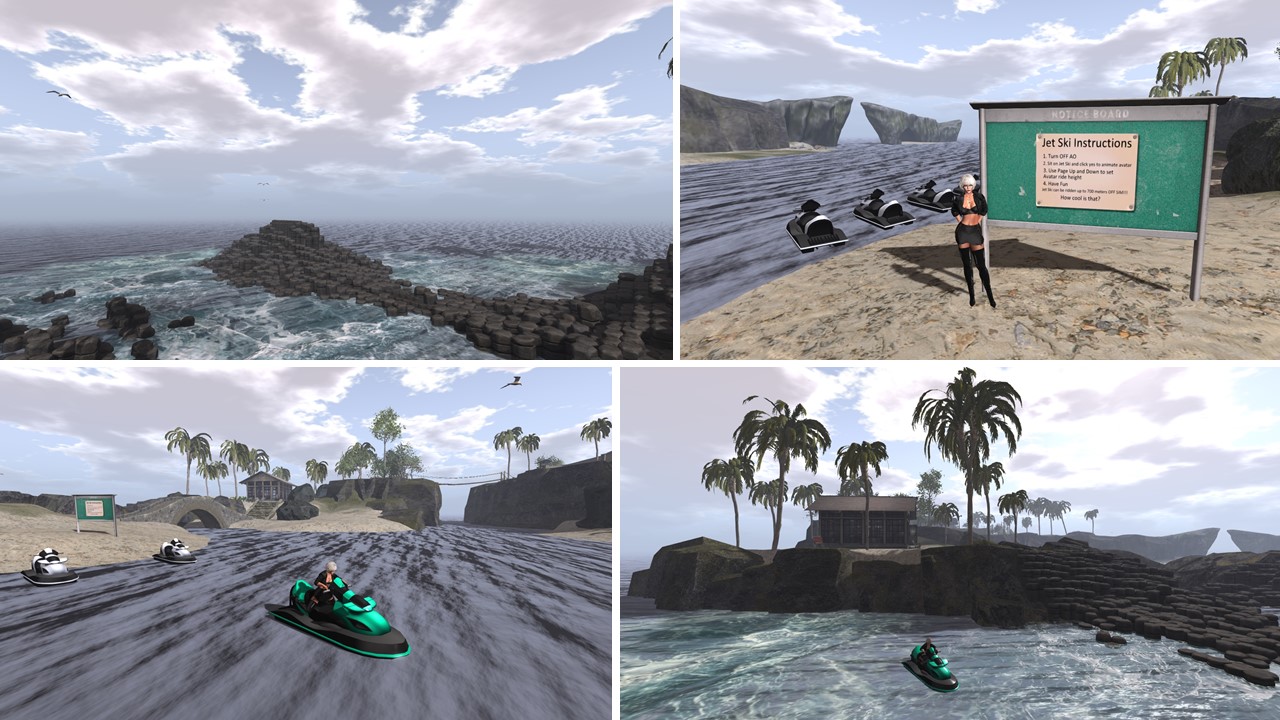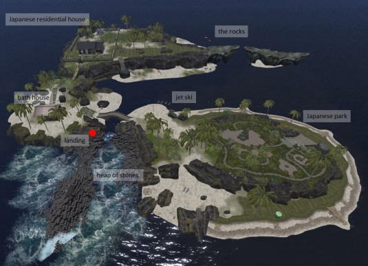 Close to the landing point is a jet ski station and of course I had to try it. The jet skis are fun and the work up to 700m off sim. I drove all around the islands before I continued my simploring tour on foot and explored the Japanese park that occupies the largest of the 3 connected islands. It is a peaceful place, the park is quite simple with a huge stone in the center.