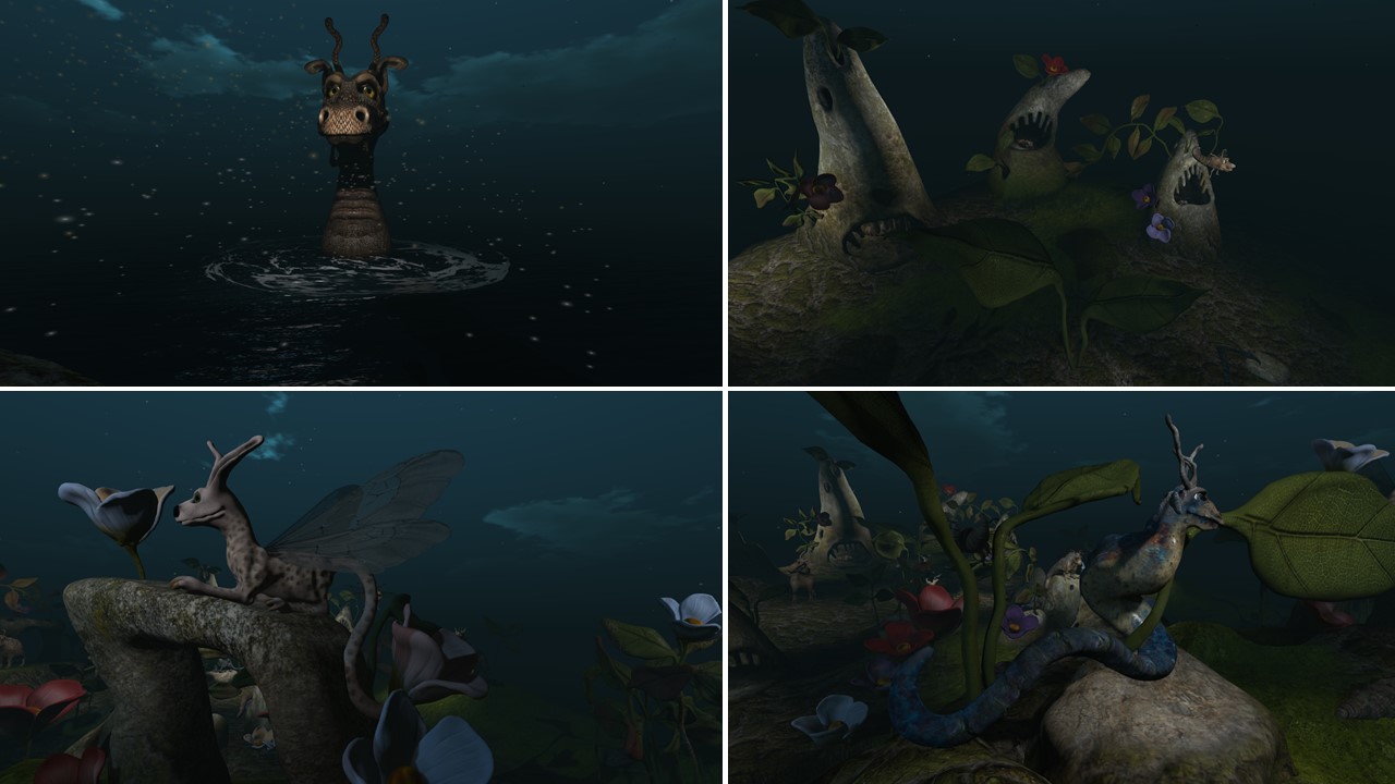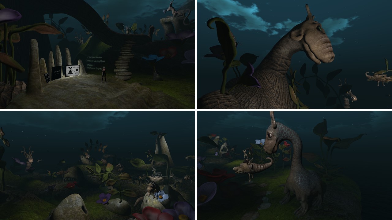 Right at the landing you’re asked to use advanced lighting and to set shadows with sun/moon and projectors. The scenery at Another Fairy Tale by Cica Ghost is set at night and Cica plays with lights and projectors to showcase her animals. This time we meet dragons, some snails, some other animals which I’d call horses or unicorns (it’s something inbetween), bugs, dead sharks and other fantasy animals.
