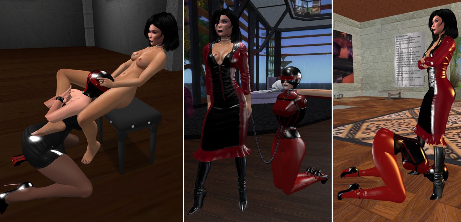 Afterwards Mistress made me wear the Venus corset along with a red catsuit. She herself wore a black and red latex dress. It was quite a fitting outfit. Mistress took me to club Domme a Domme for about half an hour, then it was time for me to tend to my RL again.