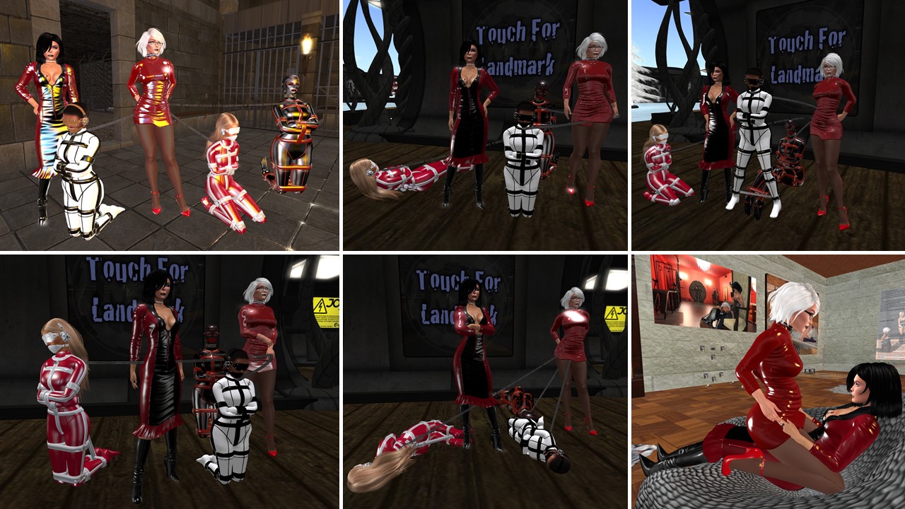 Sunday night we harvested the fruits of our “work” the night before. slave Flo, slave Gwendi and slave Luci were present all nicely wrapped up in their asylum suits. We took the slaves to Psi’s realm first and then to Mesmerize Dungeon. Three slave restcited in equal suits attract some attention. I had fun learning the menu of the suits and tried several settings. Finally I set the legbinding to cycle every 5 minutes. That led to funny constellations of the slaves. We got quite some attention, the slave decorated Mistress Jenny and me well. When it was slave Flo’s bedtime we went off ourselves…. it was a Sunday with quite a lot inworld time. And I sense how I fall deeper and deeper…